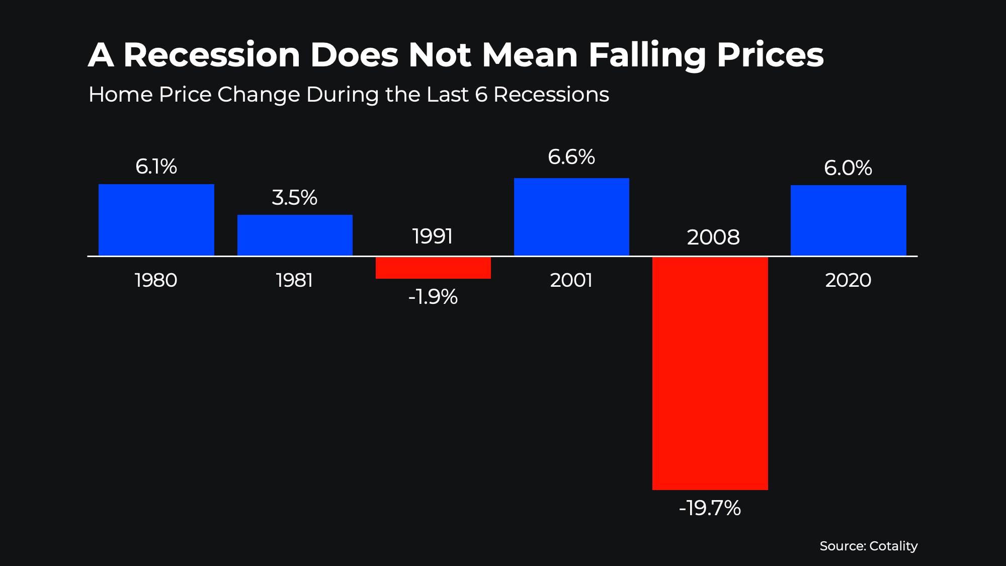 It’s easy to assume that if the economy slows down, home prices will fall. You might remember what happened in 2008. But the truth is: the housing crash of 2008 was an exception — not the rule.